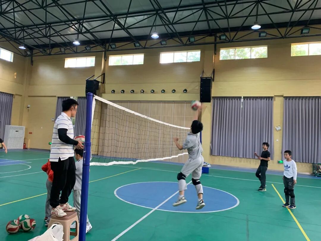 体育组的老师们正进行排球操研学。三位老师各抒己见,力图在原有的创编基础上将排球操进一步优化,使其成为符合学生身体素质,兼具排球技能特色并体现紫金小学特色的球操。他们研究、学习、操作……一步步精进技艺。在排球操研学结束后,校排球队进行了紧张的训练。三位老师悉数到场指导,为即将到来的市排球比赛做好准备!
