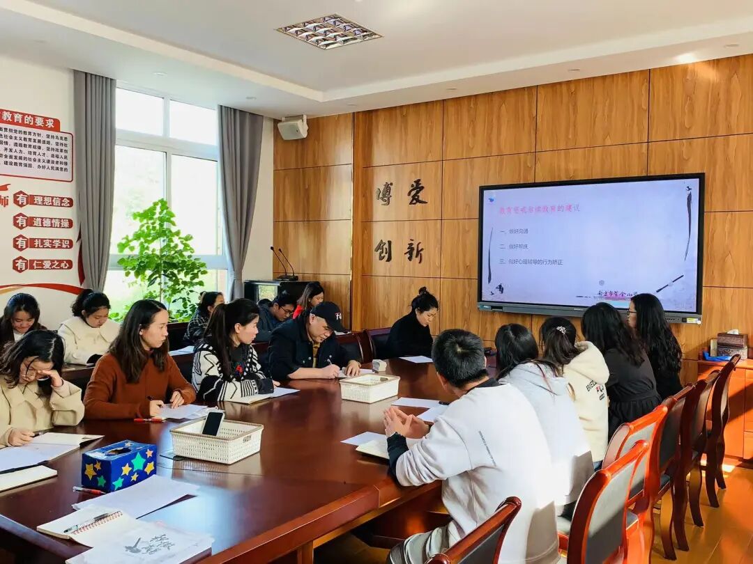 代主任分享了一篇文章指出教育惩戒的后续原则必须遵循三项原则:第一,坚持正面教育。教师要善于发现学生的优点与长处,对学生的进步及时给予表扬鼓励;第二,坚持因材施教。教师要综合考虑学生的年龄、个性、道德发展水平、认知水平、问题行为的严重程度等因素,真正把教育工作做到中小学生的心坎上;第三,坚持协同育人。教师和学校在开展后续教育的过程中善于利用一切可利用的资源与条件,对违规违纪学生开展全方位的帮扶。