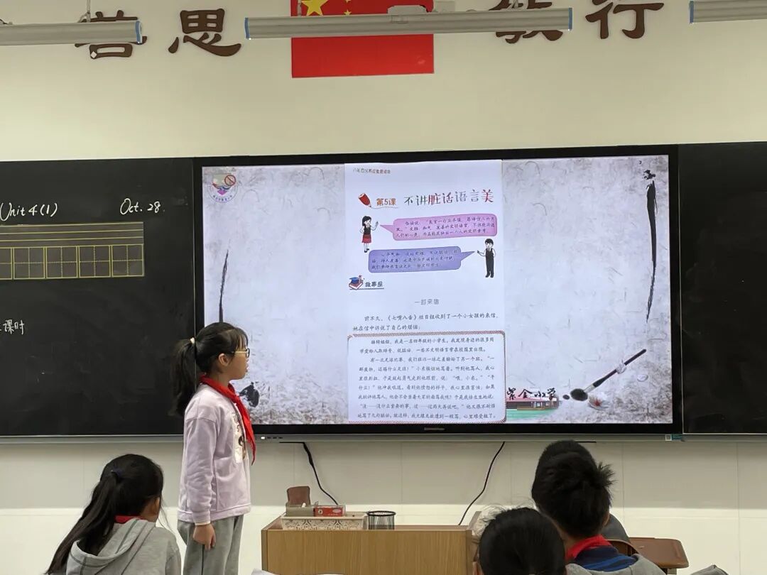 言谈是一门艺术,它是我们的第二张名片,是连接人与人之间思想感情的桥梁是学习知识、增长才干的重要方法。2021年11月2日,紫金小学各班级进行了言谈之礼文明礼仪主题的晨会活动。 晨会课上,班主任老师通过“八礼四仪”养成教育读本向学生们讲解电话接听礼仪、不讲脏话语言美等言谈之礼,在故事屋、情景再现、了解信息传递的发展史、以及实践园模拟活动中感受接打电话的礼仪和规范的文明用语,学生们更加明确接听电话的行为规范及日常交谈礼貌用语。 通过本次主题晨会活动的开展,全体学生对言谈之礼的具体内容有了深刻的认识,也明白了语言是人与人沟通的桥梁,也是代表个人形象的重要窗口,日常对话也要做到使用礼貌用语,不讲脏话。践行言谈之礼要从日常小事做起,希望每个学生学会文明接听用语,成为有温度的发声人。