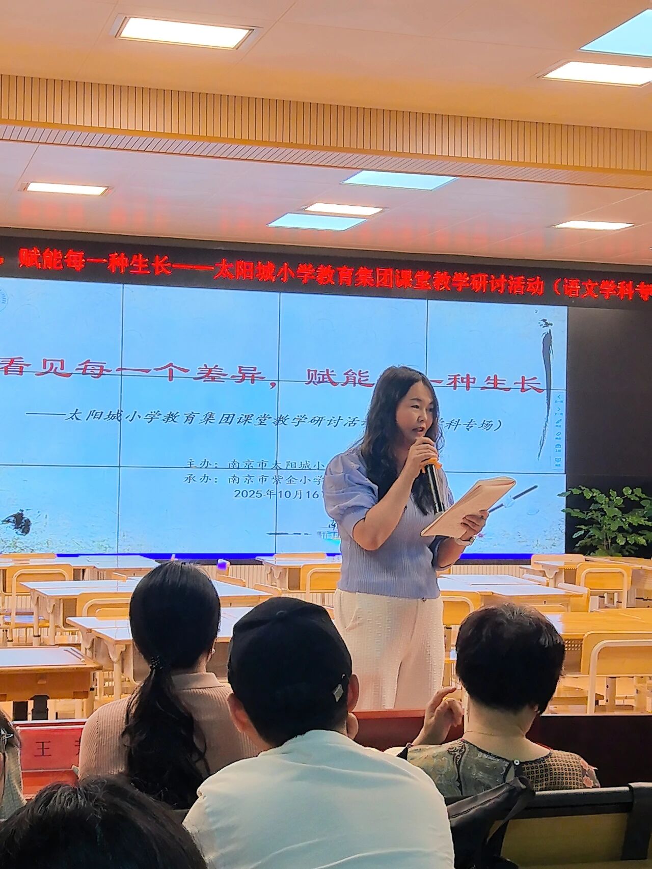 秋阳沐校园,教研绽芳华。2025 年10月16日,太阳城小学教育集团的三、四年级教师们齐聚紫金小学,开展主题为 “看见每一个差异,赋能每一种生长”太阳城小学教育集团课堂教学研讨——语文学科专场活动。