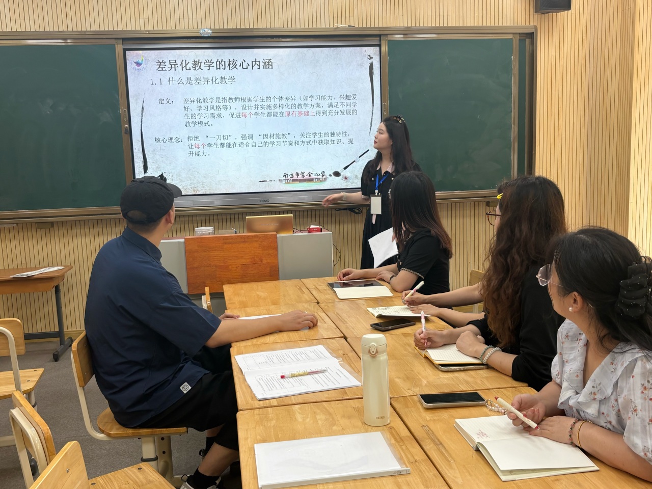 在 “实践实施策略” 环节,尤洁老师重点分享了 “课前精准评估”“课中多样设计”“课后分层辅导” 的具体方法。她提到,课前可通过 “前序知识小测”“学习兴趣问卷” 掌握学生基础与需求;课中可将教学内容分为 “基础层(核心知识点 + 简单例题)”“提高层(拓展知识 + 变式练习)”“拓展层(跨学科问题 + 开放性任务)”;课后则需设计 “巩固型、应用型、创新型” 分层作业,并通过 “一对一辅导 + 小组互助 + 线上答疑” 满足个性化需求。这些可操作的策略,为在场教师提供了清晰的实践路径。