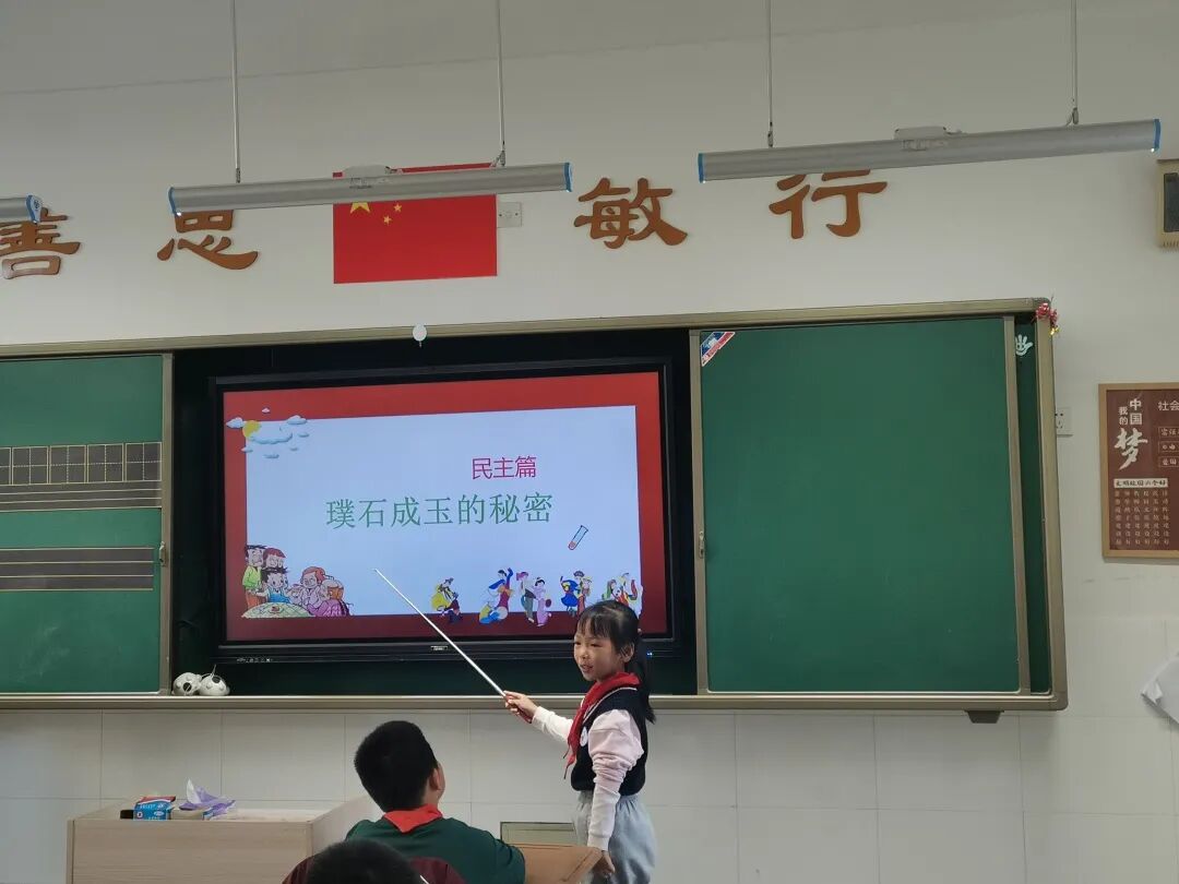 为坚持落实社会主义核心价值观,培养新时代好少年,2021年11月12日,南京市紫金小学一至四年级走进璞石的生活,展开了以“与民主同行,创幸福童年”为主题的班会活动。 在班会活动中,有的班级以讲故事的形式展开,有的班级通过讨论的形式让大家畅所欲言,有的班级老师引导学生们读一读关于民主的名言童谣,还有的班级唱起了民主歌,同学们跃跃欲试,都想谈一谈自己对民主的看法。 通过此次主题班会的展开,同学们能够更加准确理解社会主义核心价值观中民主的内涵,正确引导同学们民主既是一种权利,也是一种责任,要正确地行使和担当。 文字:臧云雷 图片:朱 慧 审核:代 文